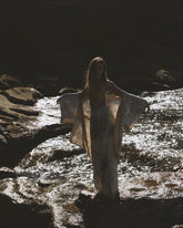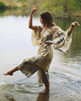 The Botanical Eco-Dyed Silk Short Kimono offers a lighter, versatile take on Solty's signature Sita silk kimono. Crafted from 100% silk, it has been botanically dyed using leaves and flora to imprint delicate patterns across the fabric. Each garment is entirely unique, carrying the quiet beauty of the natural world.
